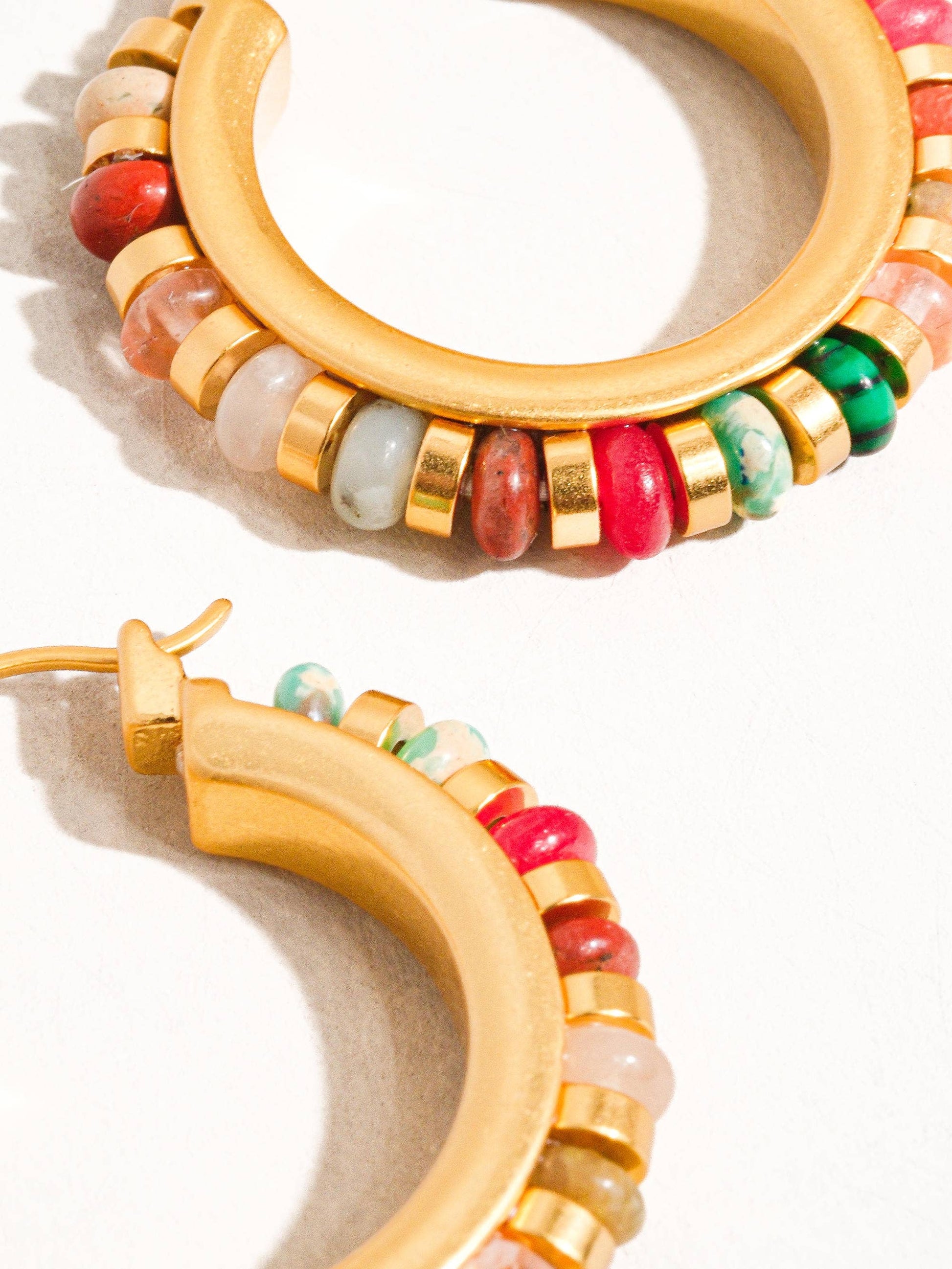 Capri 18K Gold Color Beaded Resort Hoop Earring