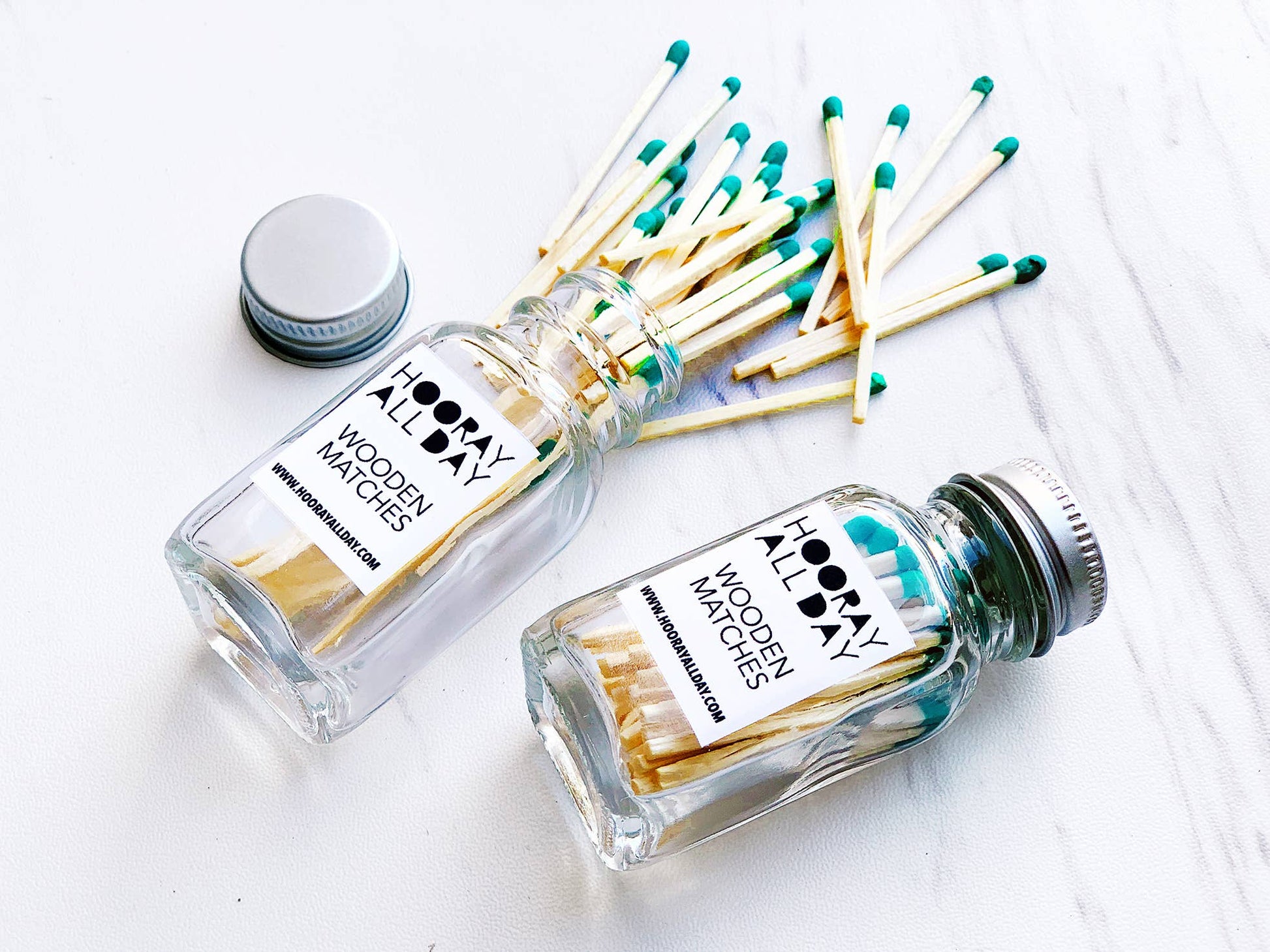 Our cute little bottles of colorful wooden matches are convenient and look adorable sitting next to your favorite candles and around the house or office. Each order includes approximately (35) 2" wooden matches, packaged in a cute square glass bottle with a silver aluminum top. Each bottle is approximately 3" tall x 1.25" wide x 1.25" deep. Each bottle comes with a convenient strike strip on the back.