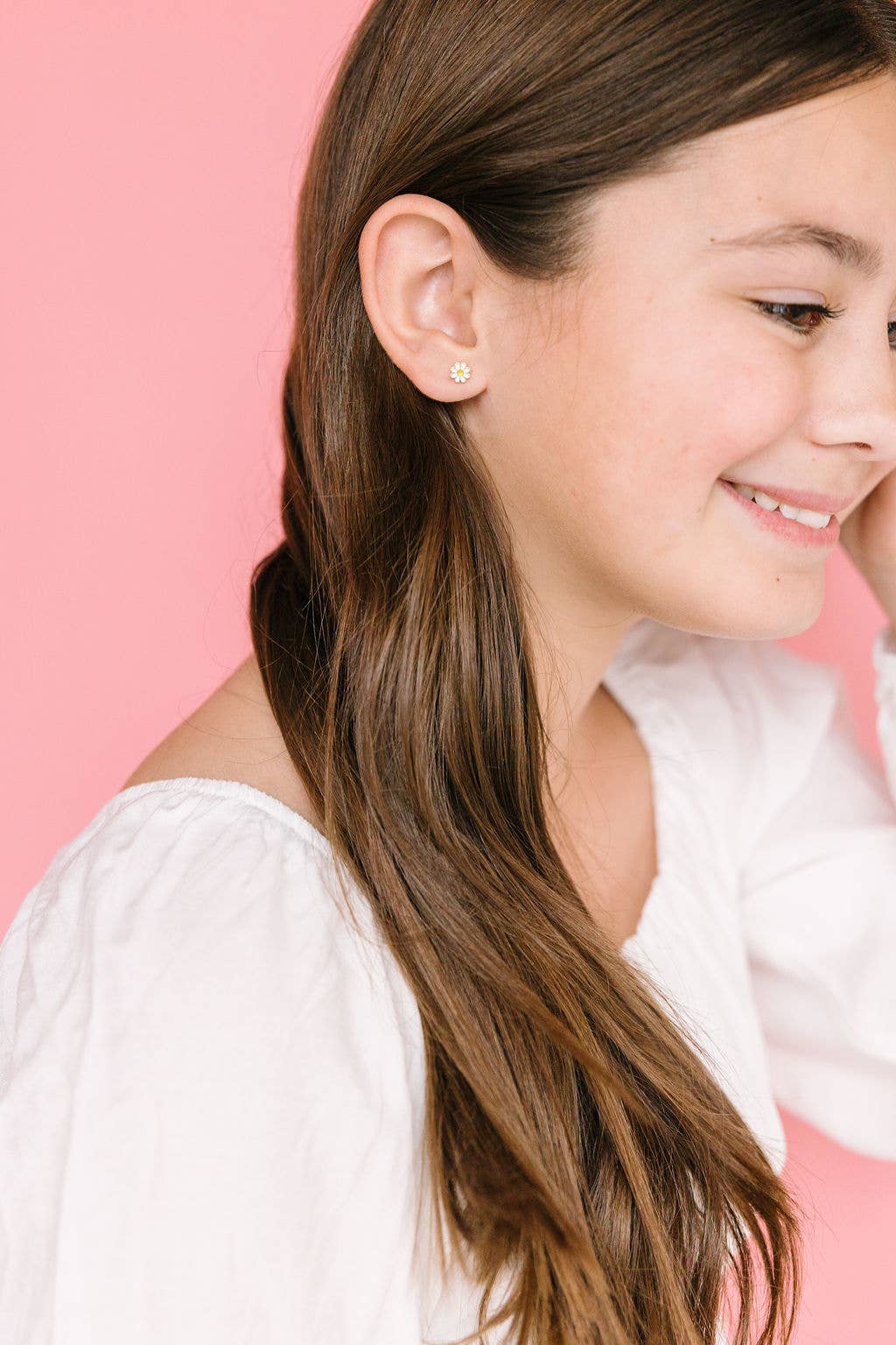 Designed with active girls in mind. Our earrings feature a comfortable, screw on back and are gentle on even the most sensitive ears. Play, swim & sleep in comfort.