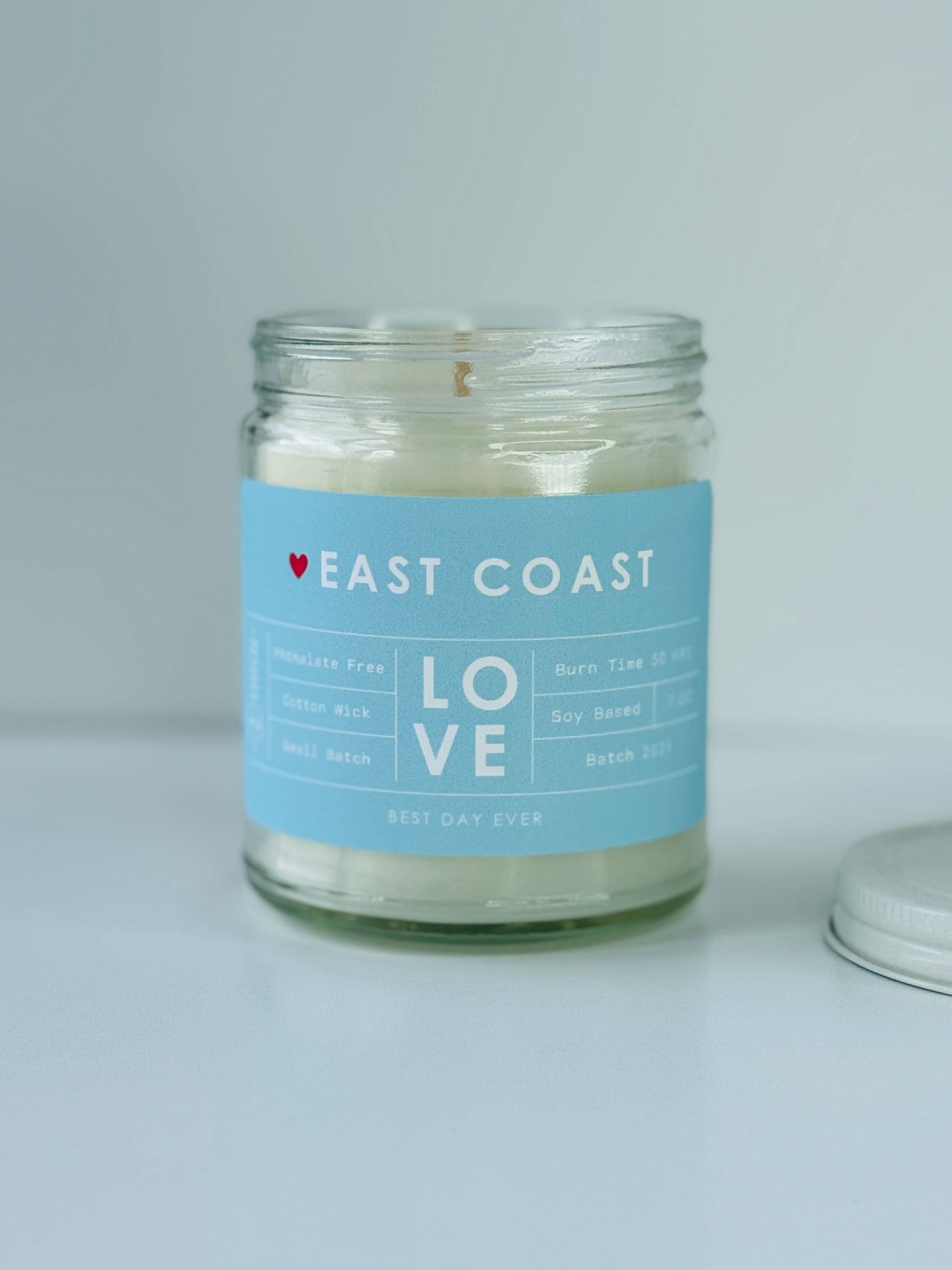 East Coast Love Candle - It's been so cold outside and the storms have put me in a Florida state of mind. Giving some love to the East Coast, Salt Life, and sunny Florida. - Rambling Caravan candles are inspired by home, travel and adventure. Made from a soy/coconut based wax blend, the candles are hand poured in Virginia Beach, Virginia. We use phthalate free fragrances and have an assortment of fragrances from which to choose. Many of our candles have different color labels to choose from as well. We use cotton wicks with no zinc or lead. The burn time is approximately 50 hours.