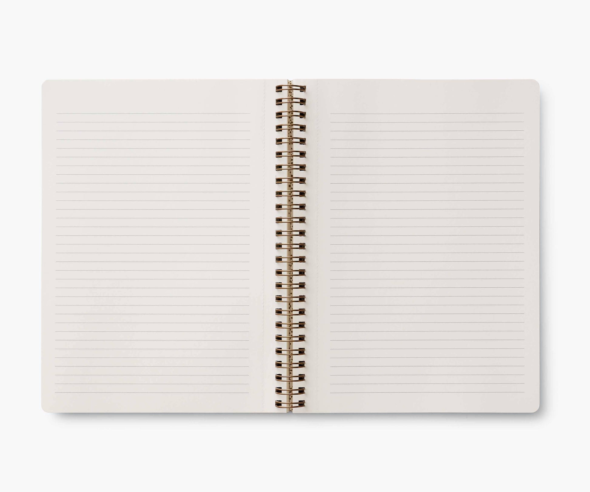 Hit the books with our softcover spiral notebooks, featuring full-color covers with gold foil accents, printed on a heavy-weight textured paper. The notebook has 150 ruled pages, a sturdy double-spiral binding, and pockets for extra storage.