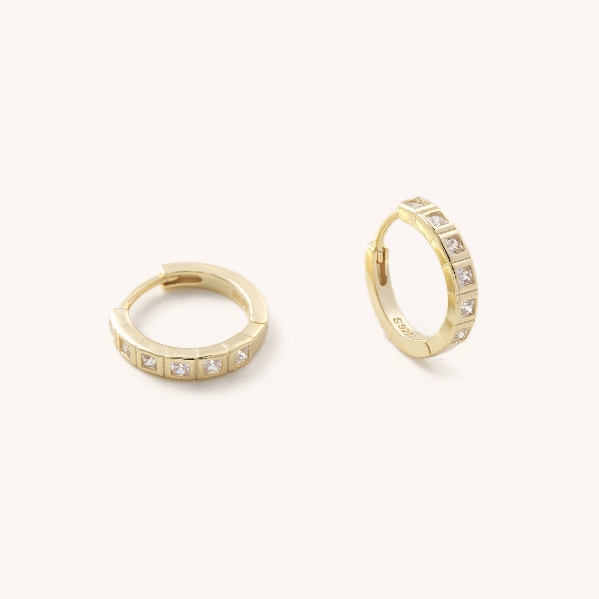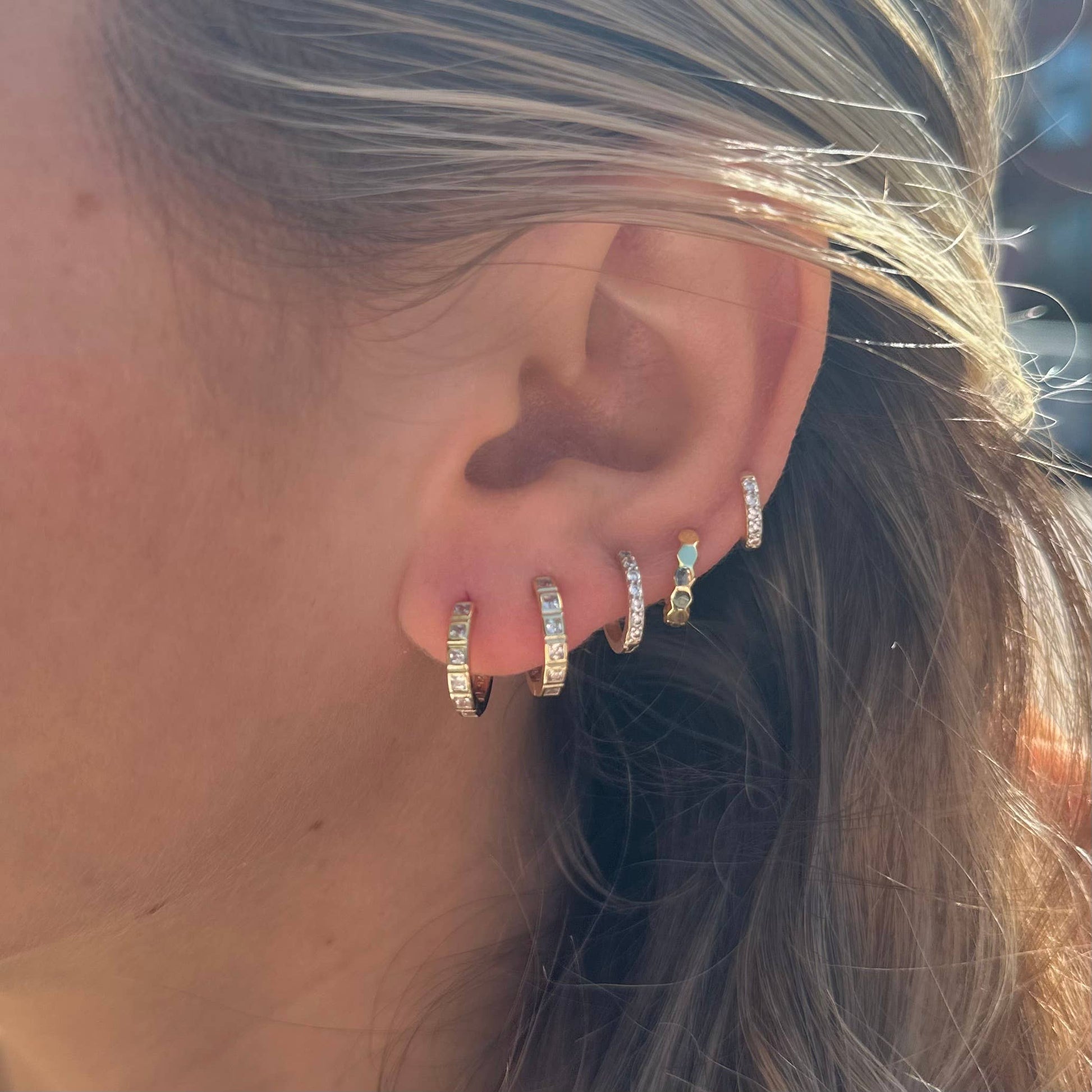 Our huggie hoop earrings are the perfect versatile pair with just enough sparkle to add to your everyday look- you'll never want to take them off!