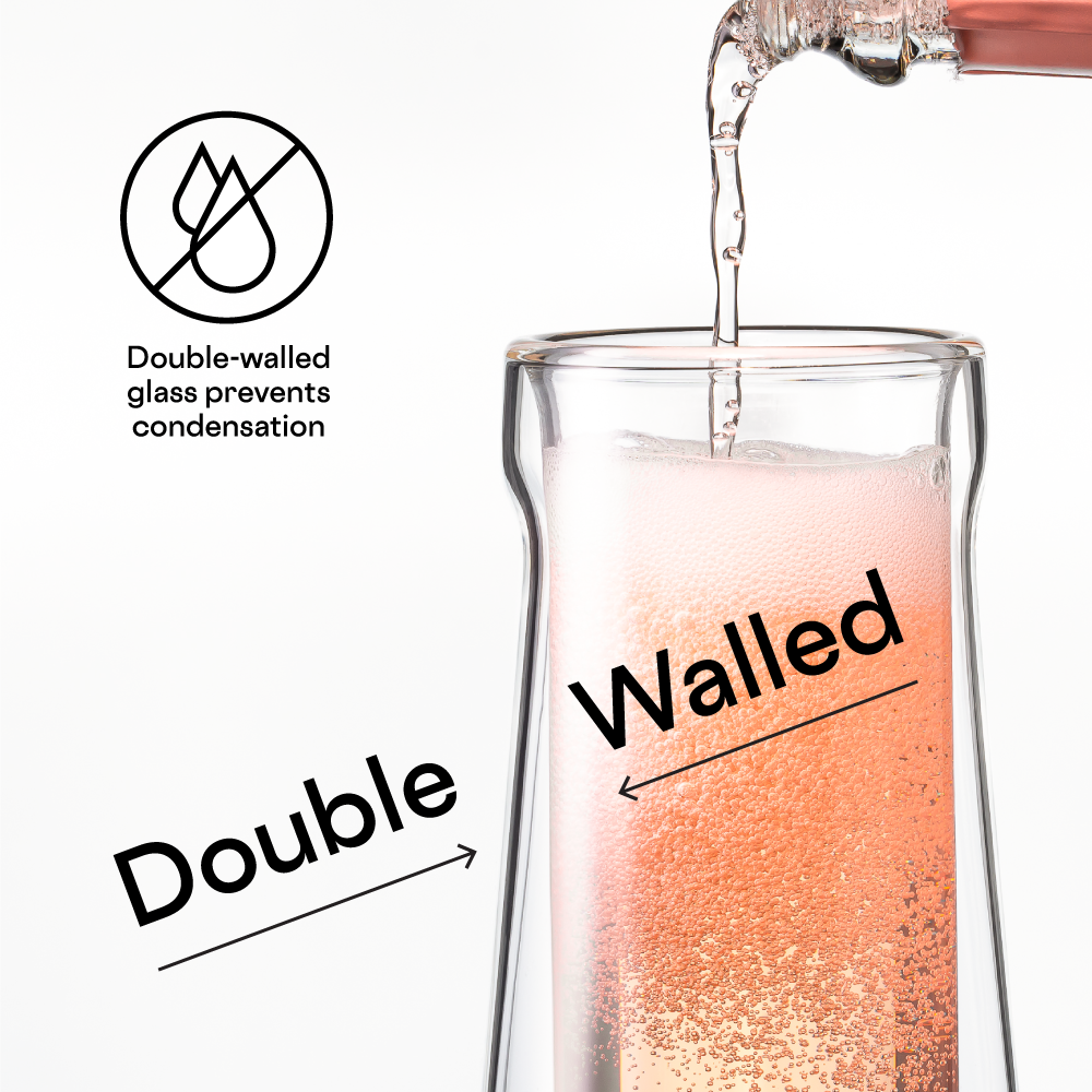 Cheers to life’s happy moments in style. This double-walled stemless set makes the perfect gift for the bride, new homeowner or holiday host. Crafted with lightweight yet durable glass, it’s great for everything from prosecco to Cava to your favorite dry brut. No condensation. No warm sips. Just superb, sparkling sips. Celebrations have never looked so chic.
