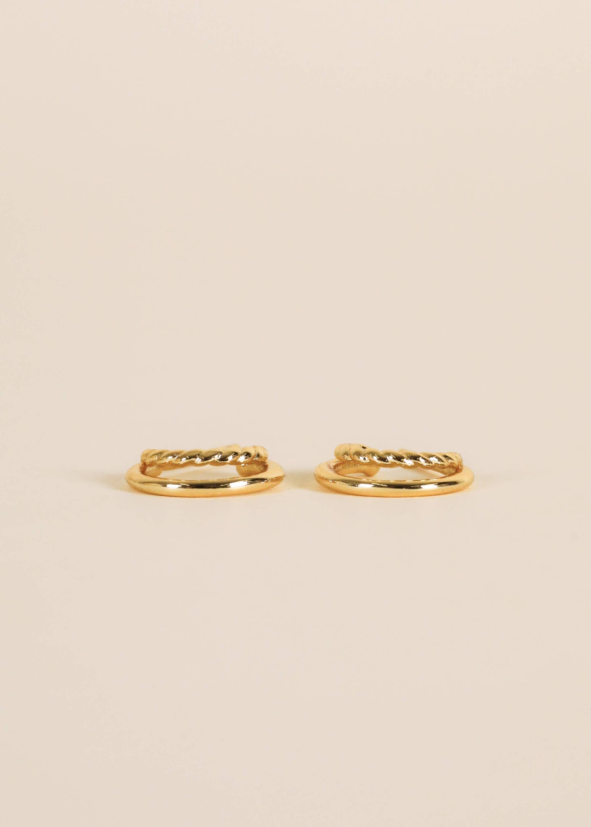 Your everyday hoop with a twist! Our two-in-one double offset hoop earring has a smooth larger hoop nestled next to a mini twisted hoop.