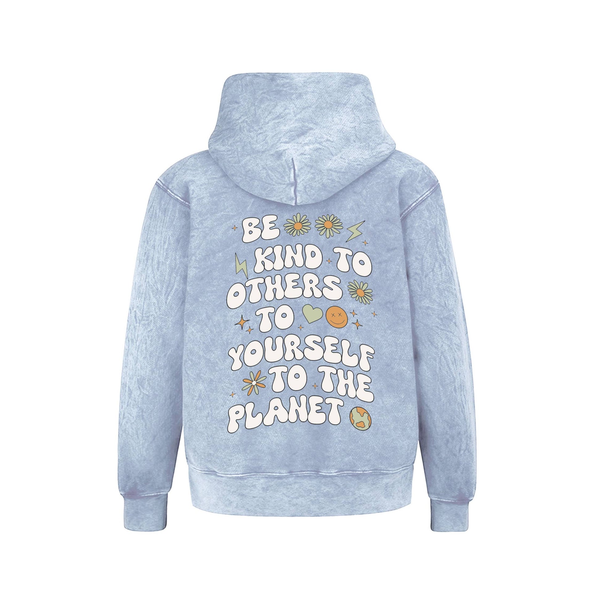 Super soft hoodie in our mid-weight, premium 3-end fleece. Mineral-washed in Light Blue. Graphic printed in multi-color at the front and back. Kangaroo pocket at waist. Relaxed fit. Rib-knit cuffs and hem. Tonal stitching. For Girls, Boys, Unisex, Tweens, and Youth. Imported. *Slight color variations may occur, given the nature of the dyeing process.