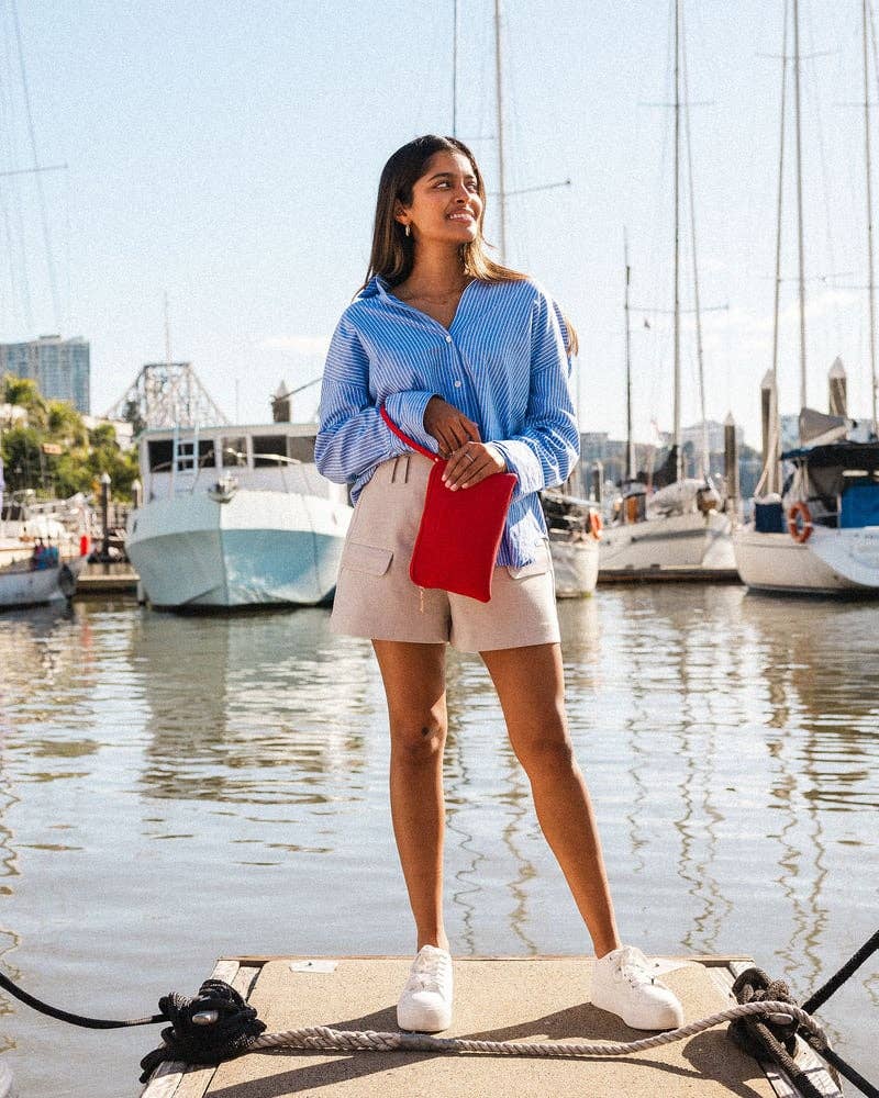 Minamalist sleek wristlet or clutch style. Outer Zip Pocket Zip Pocket Slip Pocket W9 x H5.5 x D1""