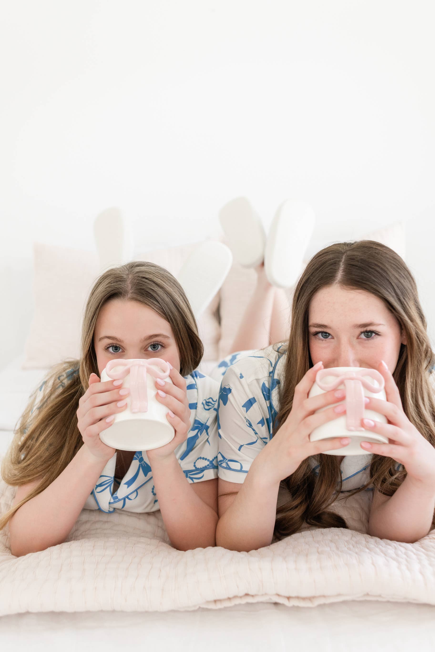 Powder Blue Bow Ceramic Coffee Tea Mug with Ribbon Handle
