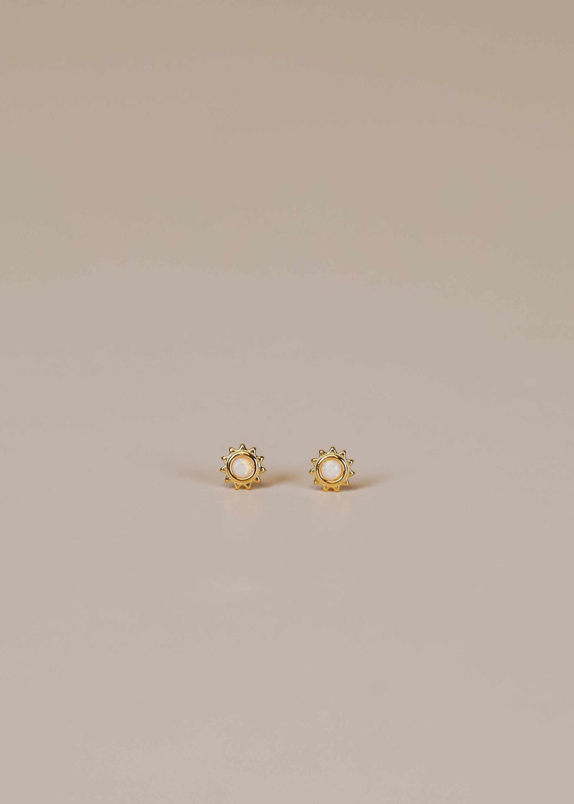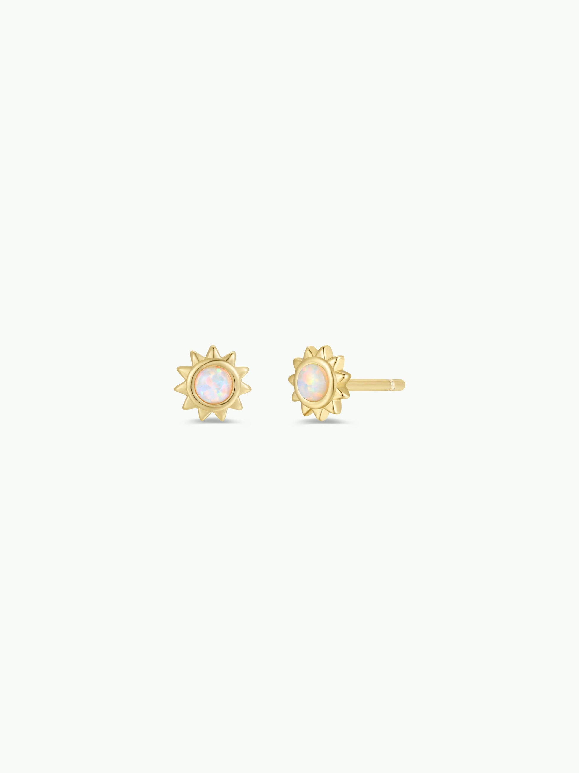 Sun Stud - White Opal - Gold Earrings