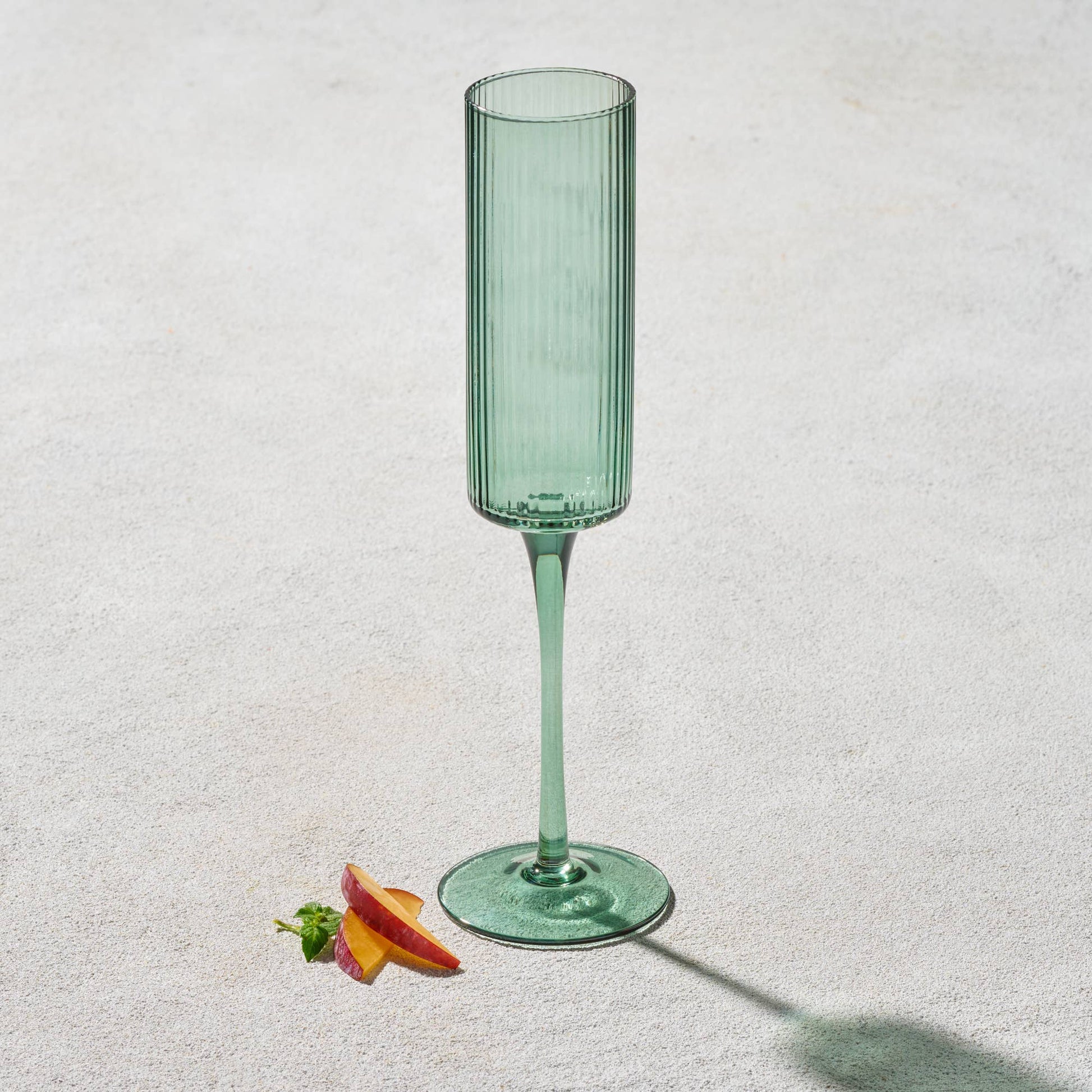 2 Pack Vikko Decor - Malibu, Ribbed Glass, Green, 10 oz Coupe